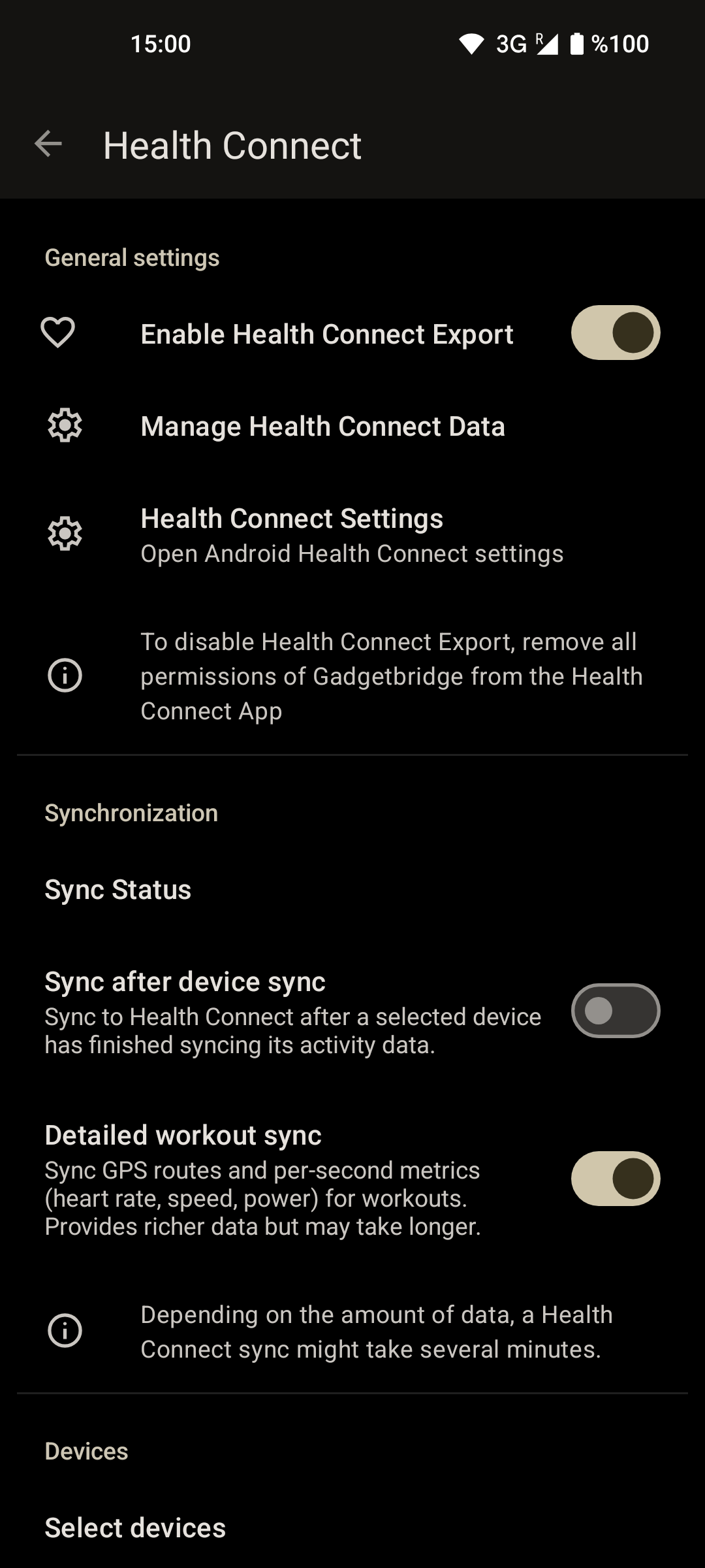 - Enable Sync after device sync to automatically sync data after your device syncs with Gadgetbridge
